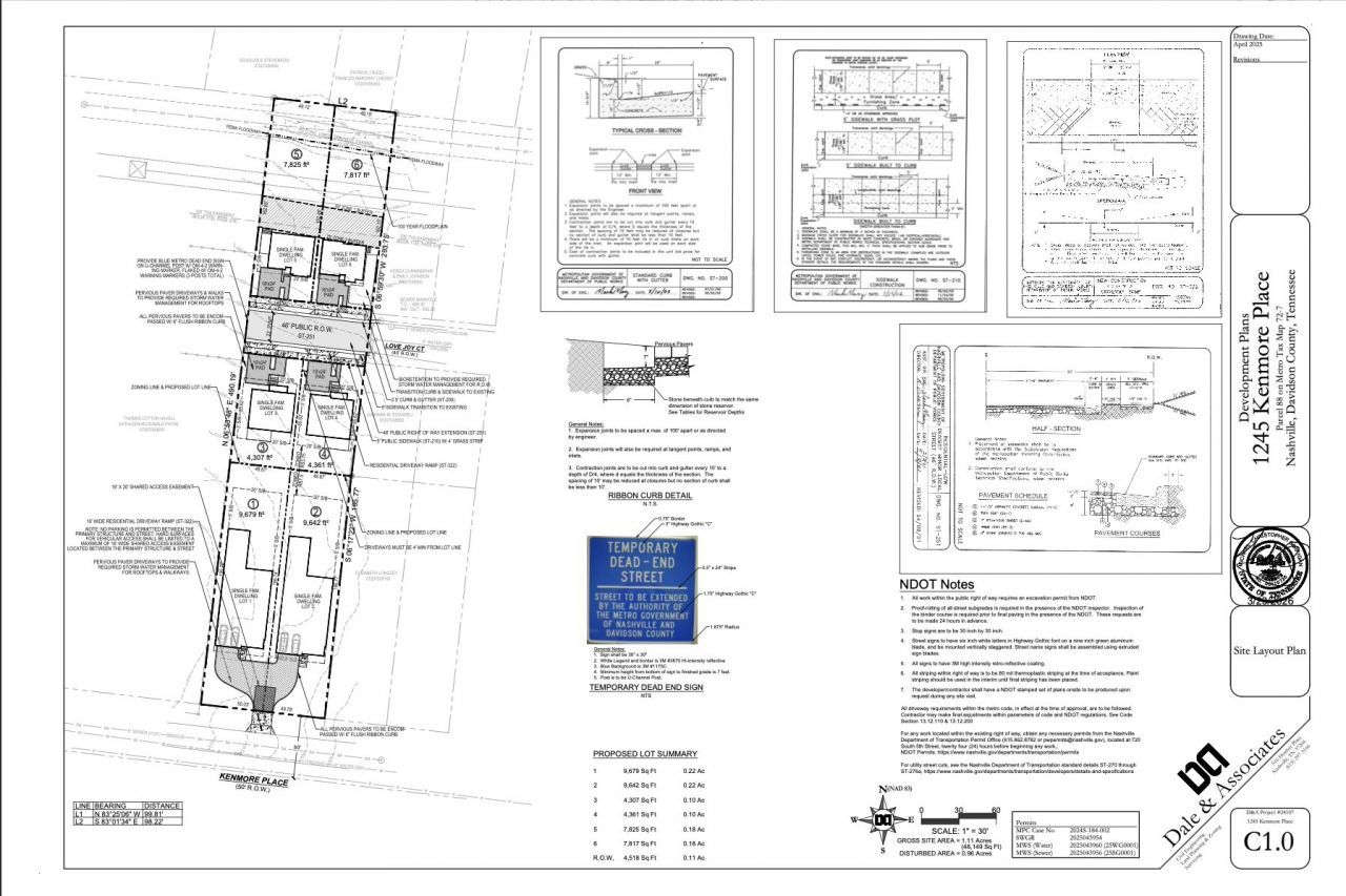 Grading permit approved and ready for civil construction. Rare fully entitled six home development opportunity in Nashville on approximately 1.2 acres. Site approved for six individual single family home pads, each with road frontage, including two front lots zoned RS7.5 and four rear lots zoned RS3.75. Once civil work begins the lots can be individually deeded.Extensive development work already completed including site plan, civil engineering plans, survey, geotechnical report, and conceptual home designs by P Shea Design.Located minutes from major growth drivers including the new Tennessee Titans stadium, East Bank redevelopment, Oracle campus, and the ongoing transformation of the Trinity Lane corridor. Development package available including civil drawings, survey, geotechnical report, site plan, architectural schematics, and layout renderings.