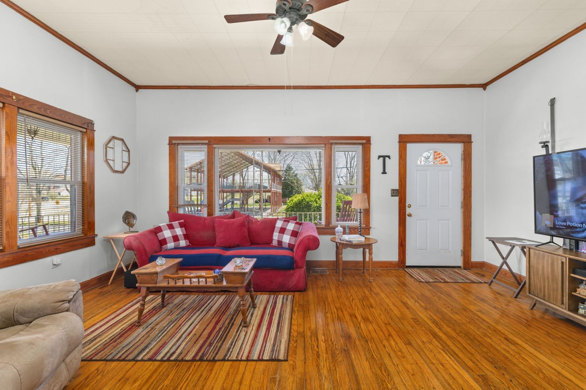 Location! Location! Location! This charming home is ideally situated just off the square in the heart of downtown Lawrenceburg. Enjoy the convenience of being within walking distance to local restaurants, shops, boutiques, antique stores, and the weekend farmers market.This well-maintained home features beautiful hardwood floors, tall ceilings, and abundant natural light throughout. The kitchen comes fully equipped with a refrigerator, dishwasher, and stove. Each bedroom offers generous space, and the primary suite includes a large walk-in closet.Step outside and unwind on one of the two spacious covered porches-perfect for relaxing or entertaining. Additional highlights include an extra-large crawl space offering excellent storage, a newer HVAC system (just 2 years old), and a recently installed water line connected to the city.