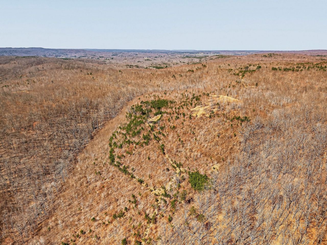 This large, contiguous tract in Sequatchie and Grundy Counties, Tennessee, offers buyers seeking recreational property, hunting land, or a private setting with multiple potential homesites. Positioned along a county-maintained paved road, the property offers convenient access while retaining a secluded, rural setting. The land features a diverse mix of topography, including level areas, gently rolling sections, and steeper terrain. This variation offers multiple potential building sites, several of which offer long-range views of the surrounding Cumberland Plateau. These elevated areas may be suitable for residential structures, cabins, or weekend retreats, depending on buyer preferences and intended use. A notable natural feature of the property is a large blue line stream that flows through the tract. The stream corridor is lined with native Mountain Laurel and mature Hemlock trees, creating a shaded and scenic environment. Portions of mature timber remain within designated stream management areas, contributing to both visual appeal and habitat diversity. The majority of the property is wooded, with a mix of regenerating timber and retained mature stands. The land was timbered several years ago, resulting in a habitat structure that supports a variety of wildlife. The combination of early successional growth, wooded cover, and water sources creates favorable conditions for species such as whitetail deer and wild turkey. Several strategically placed food plots are already established on the property. These openings, combined with the natural terrain, help create defined travel corridors and pinch points that may be suitable for hunting setups. The land's layout allows for multiple stand locations while maintaining separation between hunting areas. An established internal road system provides access throughout much of the property. This network supports ease of navigation for recreational use, land management activities, and access to various sections of the tract.